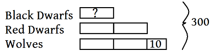 Now we can see that we have five of our unknown unit (which is the number of Black Dwarfs), plus 10 more, to make a total of 300: