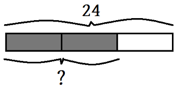 Bar diagrams are almost like magic for fraction (and later, percent) problems, because the “whole” bar can represent ANY amount. The process of cutting the whole amount into fractional pieces is clearly related to division, and the picture of the bar communicates what is happening more clearly than an abstract equation like \frac {2}{3} \times 24 = ? ever could: