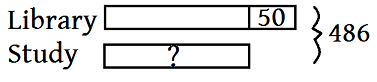 A professor had 486 books at his house, some in the library room and some in his study. There were 50 books more in the library than in the professor’s study. How many books were in the study?