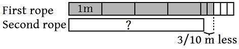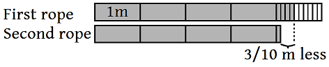 By making an equivalent fraction, splitting the 5ths into 10ths, we can easily see how long the second rope must be: