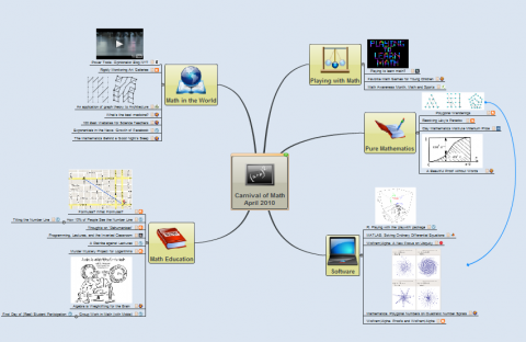 This month’s Carnival of Mathematics is an interactive mind map. Click on the image to check it out, and then click on the + signs to expand each topic. Enjoy!