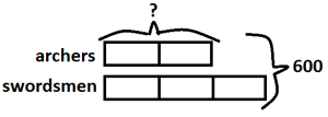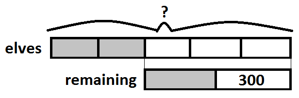 The last chunk is the swordsmen (swords-elves?), and there are 300 of them. That means we can find the size of our remaining part: