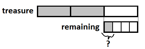 Here, the treasure is divided into thirds, and one of these thirds is our remaining part. We show that it is being treated separately by drawing a new bar below the first, connected with lines to its original position.