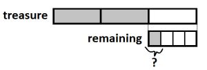 We are interested in 1/4 of the remaining part, and we want to know what fraction of the original bar (the whole treasure) it would be: