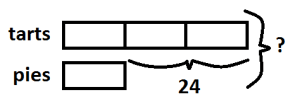 We know there are 24 more tarts than pies, so: