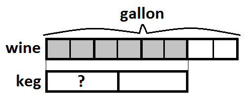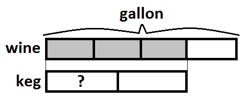 Notice that the line that splits the keg in half also bisects the unit above it (the second fourth of the gallon). Let’s make an equivalent fraction by splitting all of the units in half: