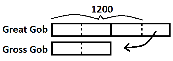 Since the “extra” unit had to be divided in half, she divided all the other units in half, too. Finally, she realized that the three smaller units remaining in the Great Goblin’s army must be 1200 soldiers: