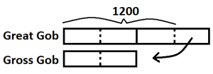 Students who are not used to bar diagrams often get confused by transfer problems, which have a beginning situation and then something is moved from one person to another to set up the end of the story. Desperate children will grab any number and guess at the answer: “Send half of them. 1200 \div 2…”