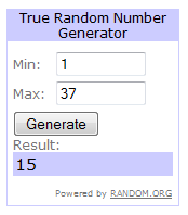 Random.org came up with 15 as the winning number. Congratulations, driftwoods. I’ve sent you an email asking for your mailing address.