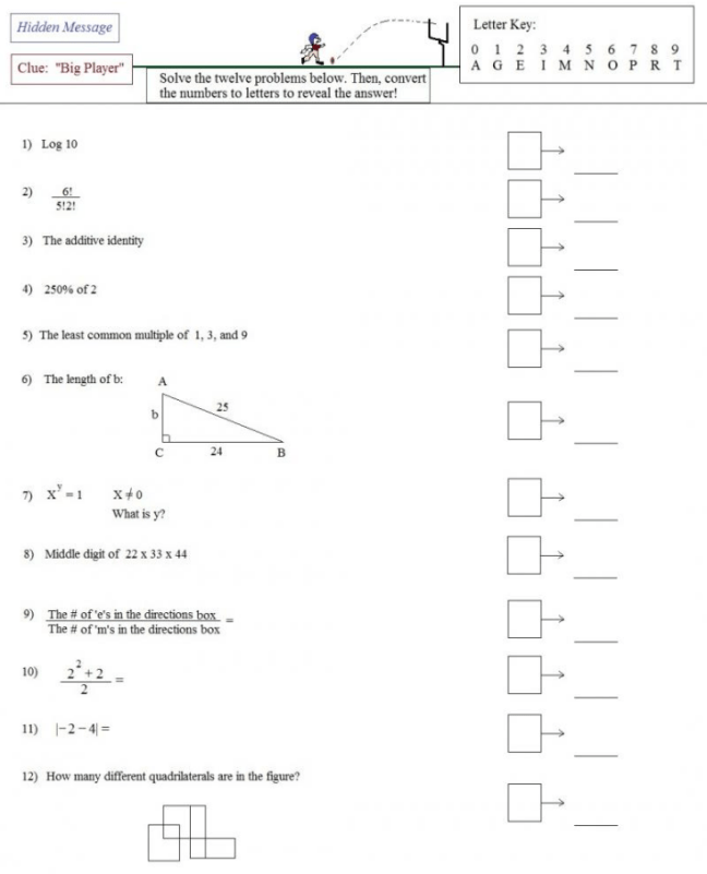 Lance Friedman of MathPlane.com has posted two bits of fun in honor of Super Bowl XLVI. (Click the images to go to Lance’s site.) And if you’re a homeschooler, Currclick is offering a Super Bowl Mini-Helper free this week.