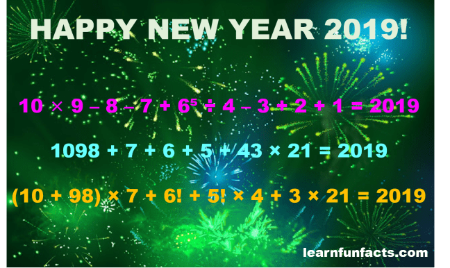 Finally, Edmark M. Law — who created the 2019 calculation graphics above — offers a nice collection of math tidbits in his Happy New Year 2019! blog post.