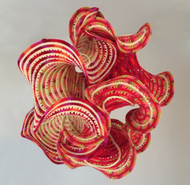 [“Red Cylinder with self intersections” by Gabriele Meyer.]
