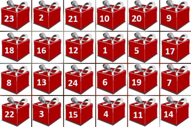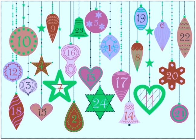 Check out these creative mathematical Advent calendars, each featuring one puzzle or activity per day for December 1–24.