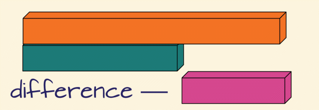 Subtraction is a relationship between two numbers along with a third number that names the difference between them.