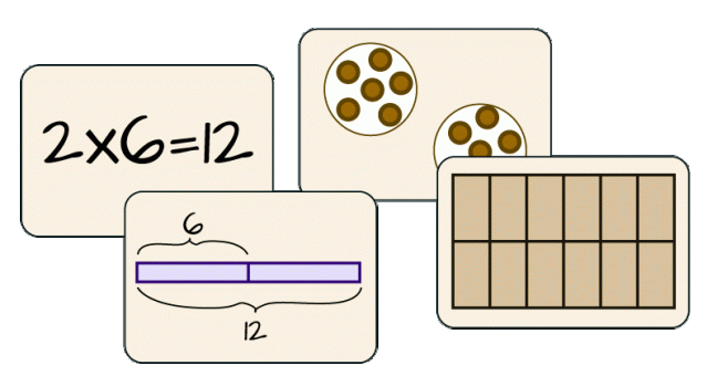 Your card deck need not include every possible fraction or every math fact in the times tables. But it should offer enough variety to cement the most common multiplication models in your children’s minds. For example, my multiplication card deck only includes products from 2×2 to 6×6, but students who master these models can extend the concepts to think about any calculation.