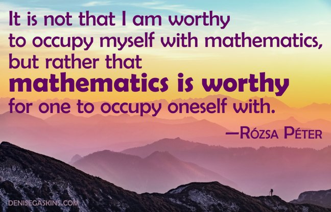 “When I began my college education, I still had many doubts about whether I was good enough for mathematics. Then a colleague said the decisive words to me: it is not that I am worthy to occupy myself with mathematics, but rather that mathematics is worthy for one to occupy oneself with.”