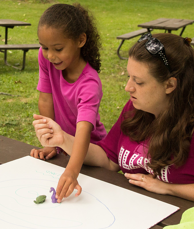 This was a fun activity from Moebius Noodles for our PK-1st grade Homeschool Math in the Park group. The children take turns making a maze and setting a dinosaur inside. Then the other dinosaurs (parents or siblings) try to guess whether their friend is on the land or in the water.